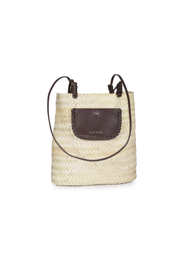 It elegantly combines natural doum and camel tan cowhide leather , for a basket that is graphic, light and resolutely modern.