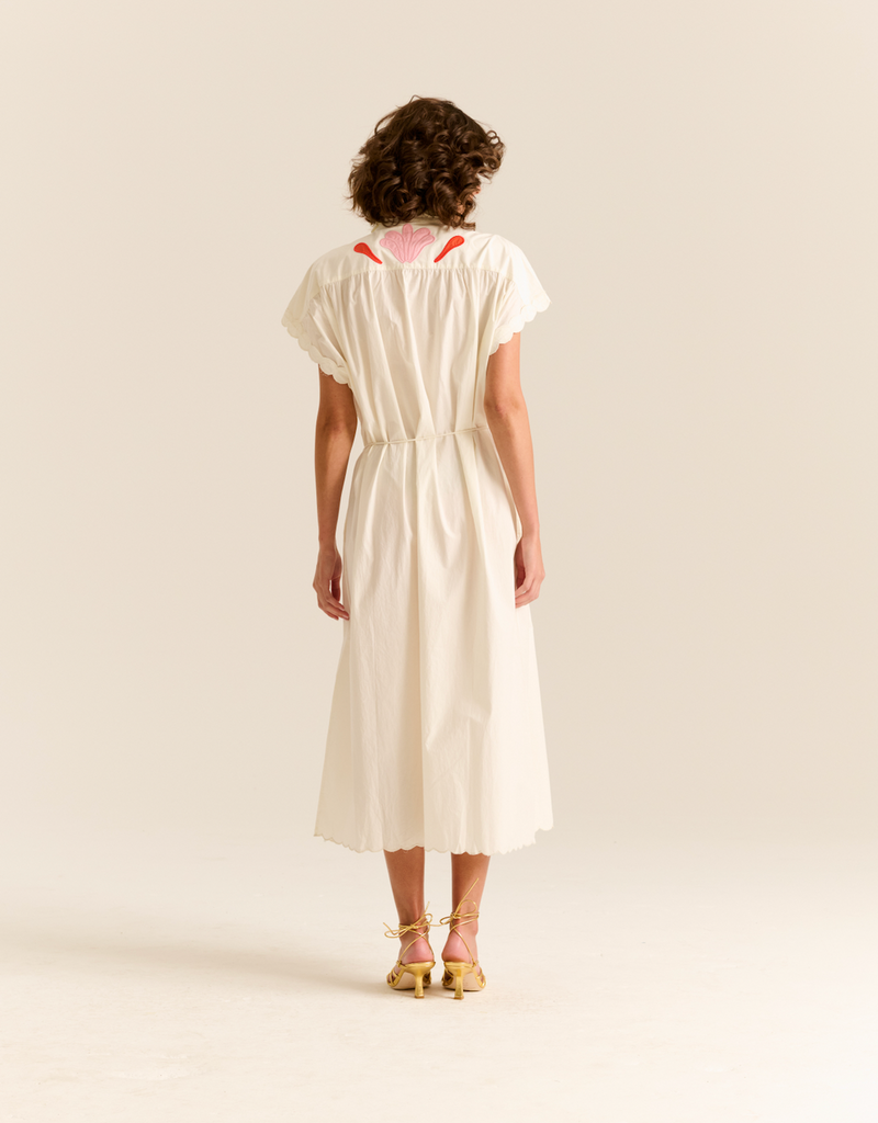 Effortless elegance for the woman who moves through life with intention. The Valerie Kaftan is your go-to piece for gallery openings, destination dinners, and those moments when you need to look polished without trying. Hand-embroidered sunshine motifs catch the light beautifully. The relaxed silhouette transitions seamlessly from day to evening, while the optional waist belt lets you define your shape or embrace flow, depending on your mood. Crafted from organic cotton in off-white, it's sophisticated enough for upscale events yet breathable enough for warm climates and travel. Pair it with heels and a structured bag for dinner, or slip on sandals for a refined daytime look. This is the kind of piece that earns its place in your suitcase again and again.