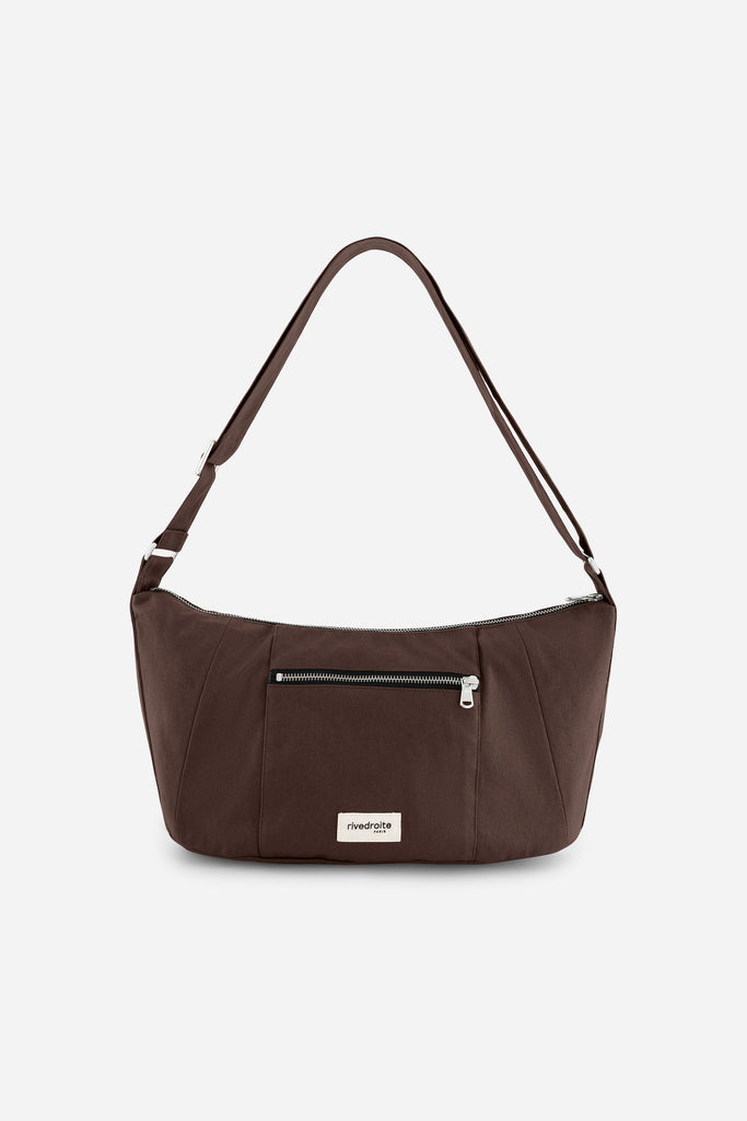 Crafted from upcycled textile scraps, the Charlot Mini Shoulder Bag merges sustainability with understated elegance. This compact silhouette strikes the ideal balance—spacious enough for daily necessities like your wallet, cosmetics, and water bottle, yet refined in proportion. The exterior zippered pocket keeps your phone and headphones within reach, while an interior zip compartment secures smaller items. Rich chocolate brown waxed canvas pairs beautifully with a sophisticated brown lining, creating a polished aesthetic. An adjustable strap allows you to customize the fit to your preference, making this the perfect companion for the discerning woman who values both style and environmental consciousness.